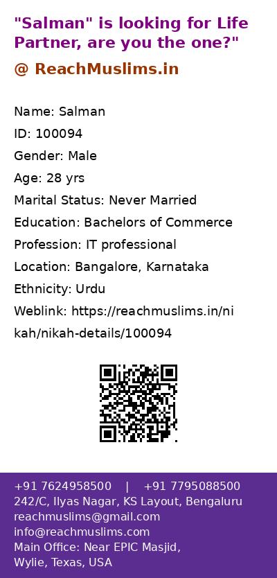 Profession: IT professional Bangalore, Karnataka